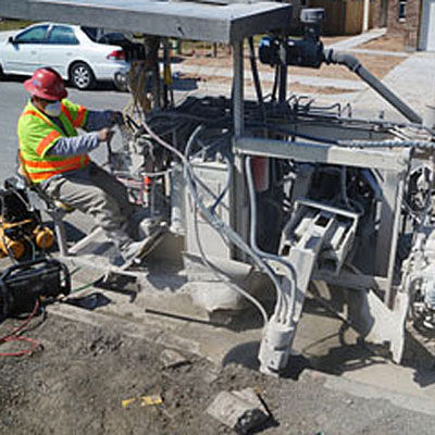 With our custom fabricated horizontal curb saws, we have the ability to accommodate your needs with residential and commercial driveway entrances, ADA ramps, parking lot modifications, access ramps and any other of your curb cutting needs. Our curb cutting machines are manufactured in-house and showcase our highly skilled team of welders, fabricators, and machinists. Keeping up with the latest innovations and advancements in manufacturing technology allows us to modify these machines for unconventional applications such as concrete bridge parapet sawing and chopping.